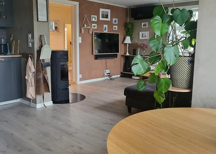 This holiday home is nestled in the Asane district, 2.8 km from the cable-stayed Nordhordland Bridge. Guests can visit the Norwegian Knitting Industry Museum about 100 metres away or check out the Tellevik coastal fort 25 minutes' walk from the property.